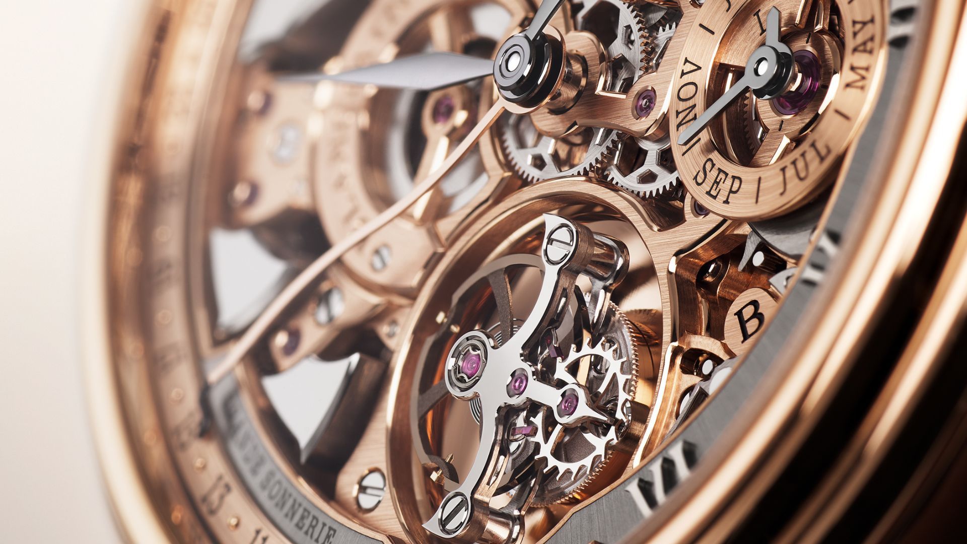 In pursuit of the most sophisticated sound possible, the team needed to choose a metal that could deliver the right tonal qualities. Blancpain selected 18 ct gold for the mainplate and bridges. Its warmth and natural resonance offered a richer acoustic result while presenting a formidable challenge to the craftsmen. Gold is significantly softer than brass or German silver, making it far more delicate to machine and finish, and leaving no forgiveness for error. Yet its polished surfaces glow with a depth and radiance those metals cannot match.